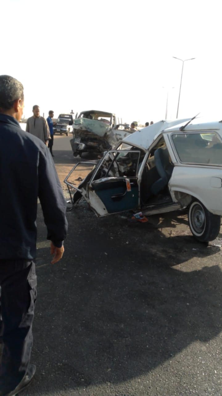مصرع وإصابة 6 أشخاص إثر وقوع حادث تصادم سيارتين على محور بقنا