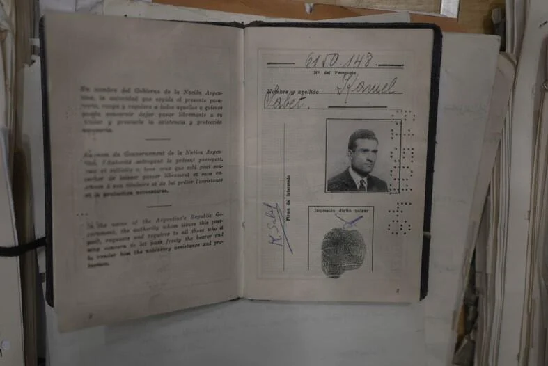 الصورة الأولى تُظهر جواز سفر أرجنتيني باسم مستعار، مع صورة فوتوغرافية وبصمة أصبع، يرجح أنها من الوثائق التي استخدمها كوهين لإخفاء هويته، وقد حافظت الاستخبارات السورية على هذه الوثائق لعقود قبل تهريبها. هذا يلمّح إلى أن العملية استهدفت ملفات محفوظة في أرشيف أمني داخلي.