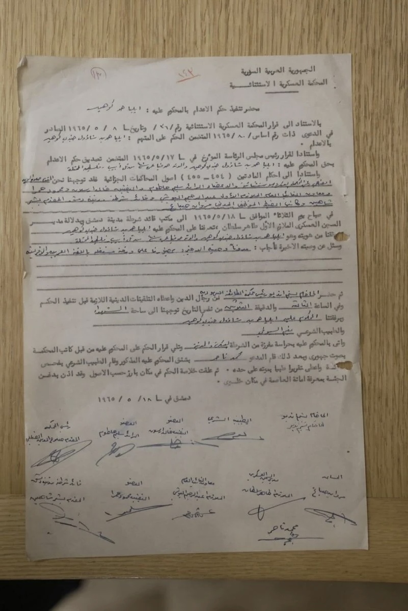 الصورة الثانية تبيّن محضرًا رسميًا صادراً عن المحكمة العسكرية السورية، بتوقيعات متعددة، ويبدو أنه أحد مستندات الإدانة التي أُرفقت بملف كوهين. نقل مثل هذه الوثيقة، بما تحويه من توقيعات حساسة، يشير إلى أن هناك اختراقًا لمخازن محفوظات الدولة أو تعاونًا خفيًا داخليًا.