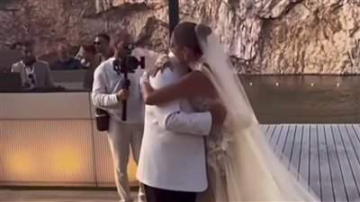 رقصة رومانسية لـ أمينة خليل وزوجها من حفل زفافهما باليونان | صور