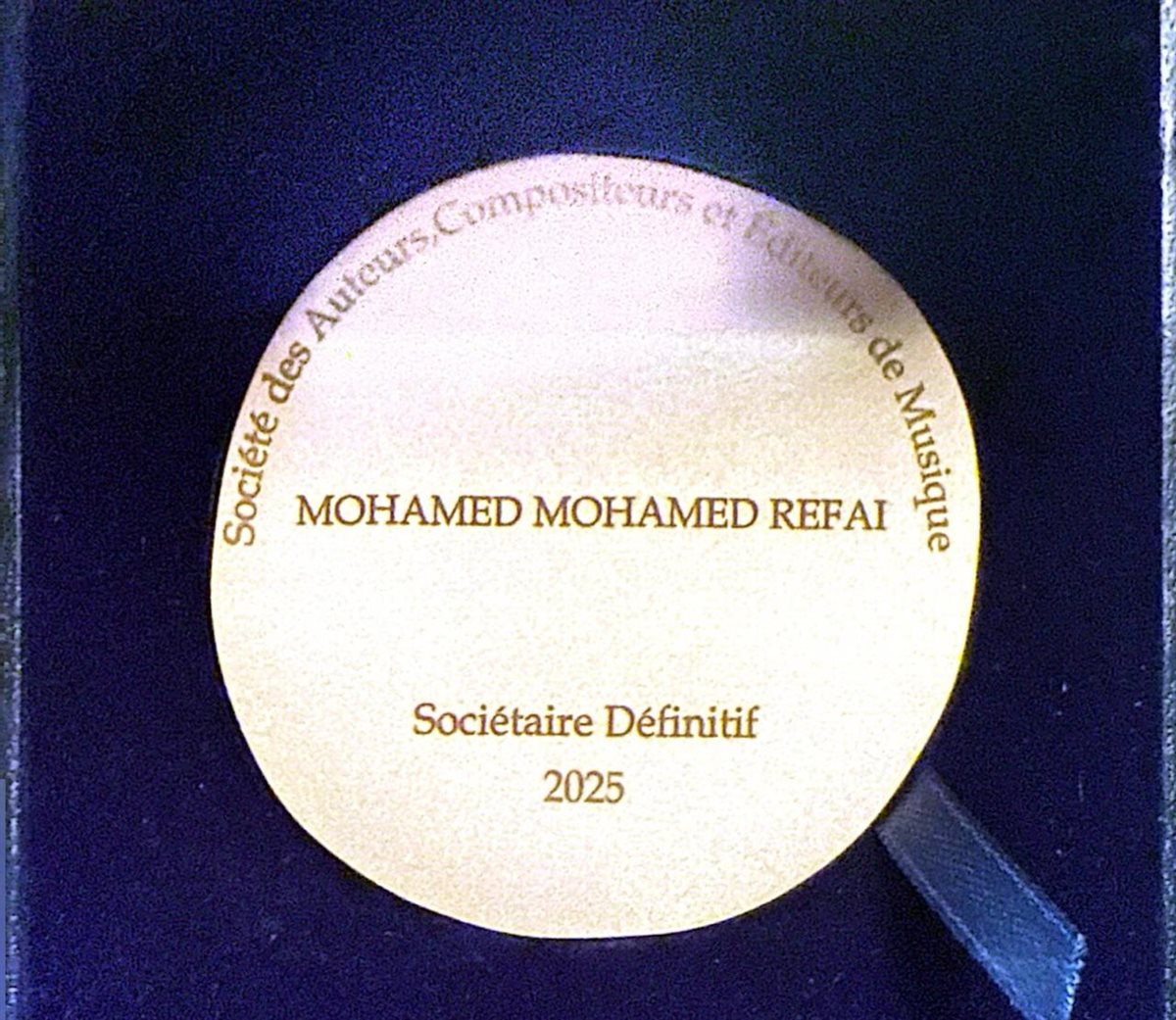 وأشار أتقدّم بجزيل الشكر وعظيم التقدير لجمعية SACEM الموقّرة على التكريم الذي نلته بالأمس من السيد رئيس مجلس الإدارة، وعلى الحفاوة الكبيرة والتقدير غير العادي الذي تلقيته من كافة الأعضاء الكرام. لقد كان شرفًا عظيمًا لي أن أحصل على العضوية الدائمة في الجمعية، وهو ما أعتبره خطوة محورية ومشرّفة في مسيرتي المهنية.