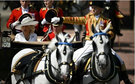 لوّح الملك تشارلز والملكة كاميلا للجمهور المحتشد على جانبي شارع The Mall من داخل العربة الملكية. وقد بدا على وجهيهما الارتياح والسعادة، بينما كانت الموسيقى العسكرية تصدح والجنود يستعرضون مهاراتهم بدقة بالغة.