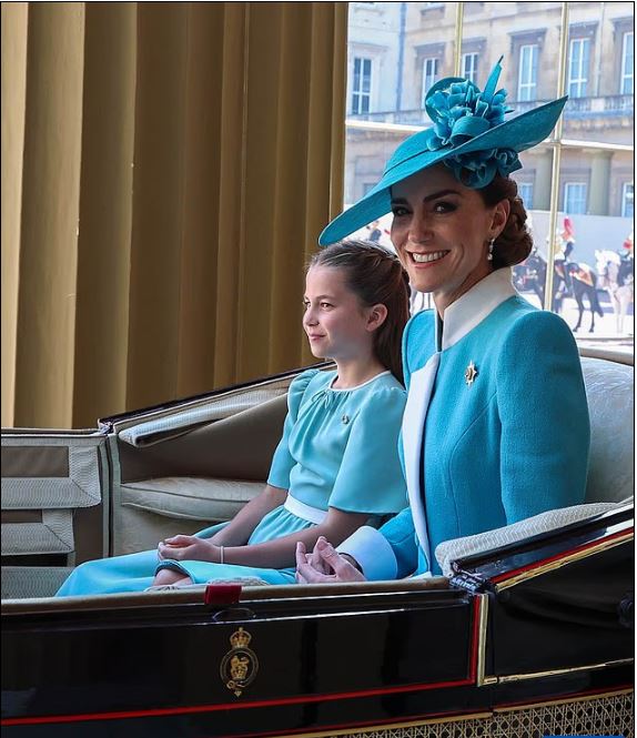رافقت كيت أطفالها الثلاثة: الأمير جورج (11 عامًا)، الأميرة شارلوت (10 سنوات)، والأمير لويس (7 سنوات)، في عربة "Ascot Landau" الفاخرة. وقد خطفت شارلوت الأنظار بفستان بنفس لون والدتها، ما أضفى طابعًا عائليًا متناغمًا زاد من جاذبية الحدث.