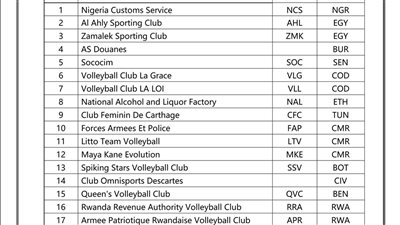 16- نادي هيئة الإيرادات الرواندية للكرة الطائرة - رواندا