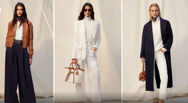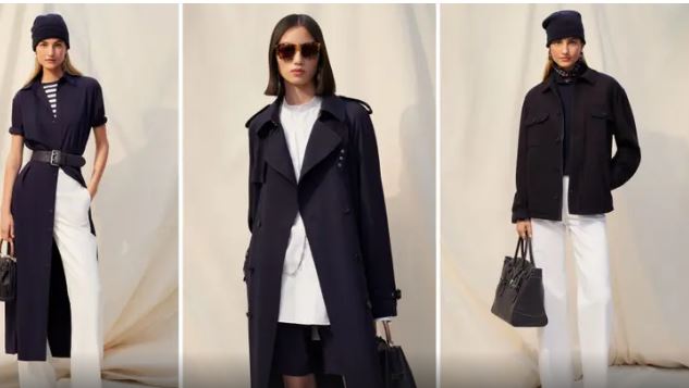 تتميز تصاميم Ralph Lauren بدقة الخياطة التي توازن بين الوظيفة والرفاهية، وظهر ذلك جلياً في القطع المتنوعة مثل السترات المزينة بالأزرار، السراويل الواسعة، التنانير الطويلة، البدلات العصرية، والجاكيتات الجلدية.