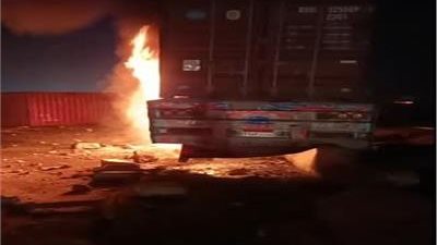 حريق هائل بمخزن روماني لإطارات السيارات بالعبور