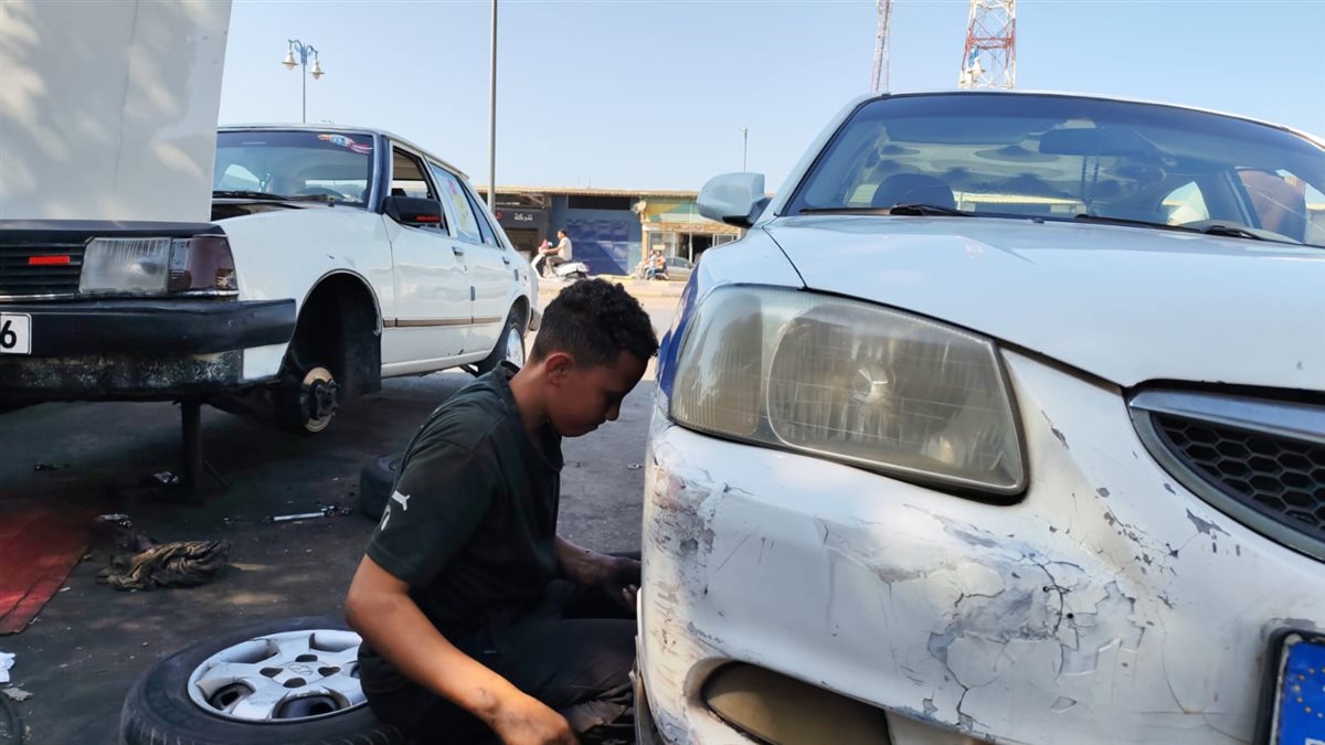 بين أصوات المحركات وعبق الزيوت المعدنية، يعمل الطفل “العربي محمد العربي” ذو الخمسة عشر عامًا، في إحدى ورش صيانة السيارات بمنطقة الحرفيين بمحافظة بورسعيد.