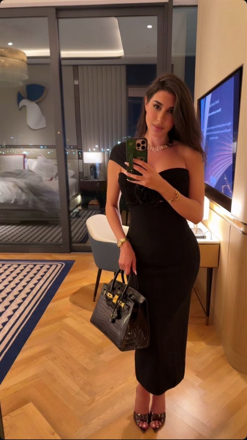هذا وقد ظهرت مؤخر ياسمين بإطلالة أنيقة ومتماسكة عكست وعيها بأساسيات تنسيق القطع الفاخرة. فقد ارتدت فستانًا أسود بتصميم الكتف الواحد، تميّز بقصّته الضيقة التي أظهرت قوامها الرشيق.